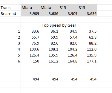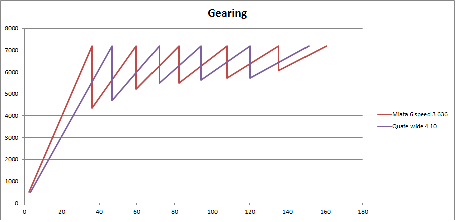 RX7 TII 4:10: Sucks for gearing worse than all others. Huge gaps in 80 mph and up range. A 4:30 would help a tiny bit for track use but would make second unusable for autocross. I would be unhappy with this.