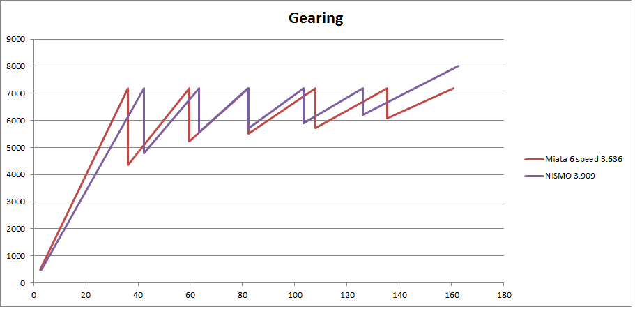 NISMO 3.909: Pehaps the ultimate of what I have looked at. Would take a few more revs in 6th on pacific but everything is better. NISMO claims Design torque for gears is 30%higher. In terms of fatigue life that is huge. Wish I had ~$6500 to blow on it.