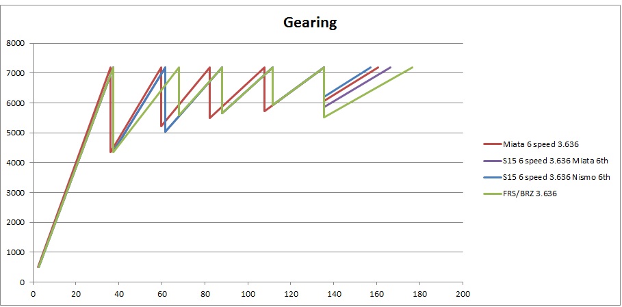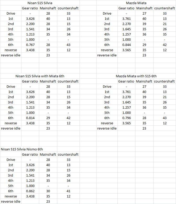 S15 6th gear in a Miata would yield a .795 sixth instead of the .767 of the S15.