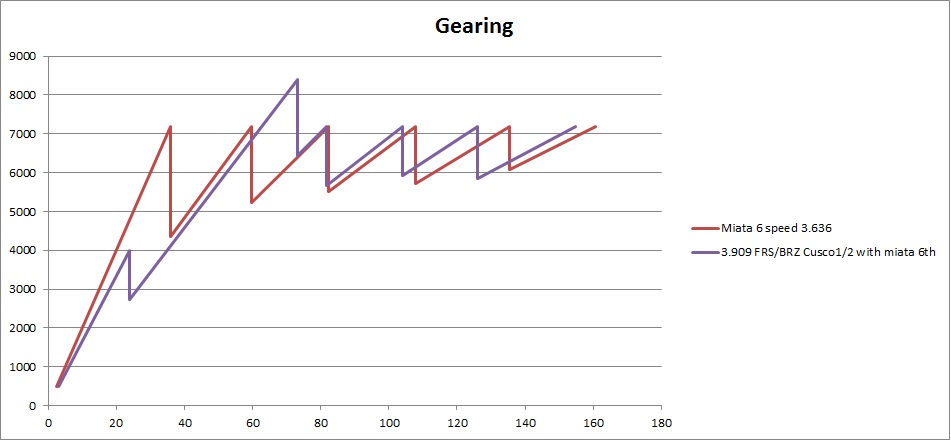 CUSCO first and second in an FRS box with Miata Sixth gear and Miata front and back portions of the housing. run it with a 3.909. autocross and track gearing awesomeness in one. In theory it should be a bit stronger than the Miata box.