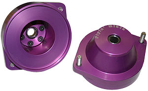 The more conventional approach has historically been to use dampers with a shorter body (thus lowering the lower contact surface of the bumpstop) or to use upper mounts which raise the upper contact surface of the bumpstop. For '90-'97 cars, the '99 and later style upper mounts provide a small amount of extra travel, and then there are more extreme upper mounts such as those made by ISC Racing and Flyin' Miata which provide so much clearance at the top that one must be careful to limit travel in order to prevent binding of the suspension.