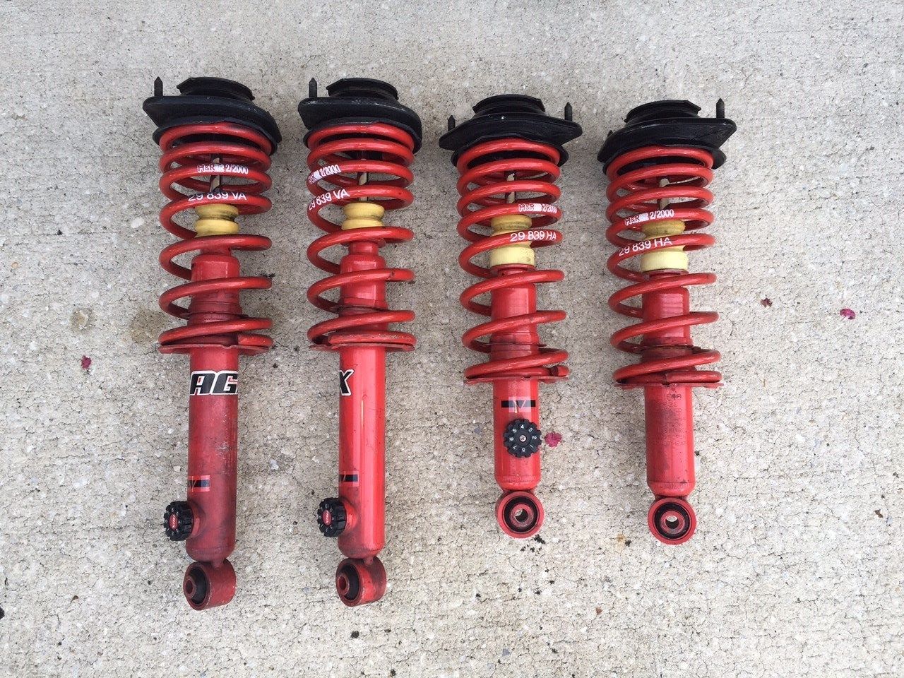 I sold the AGX setup for $265 on eBay. Turned around and bought a set of MSM Bilstein's with Eibach springs, NB tophats, and FCM bumpstops for $275.