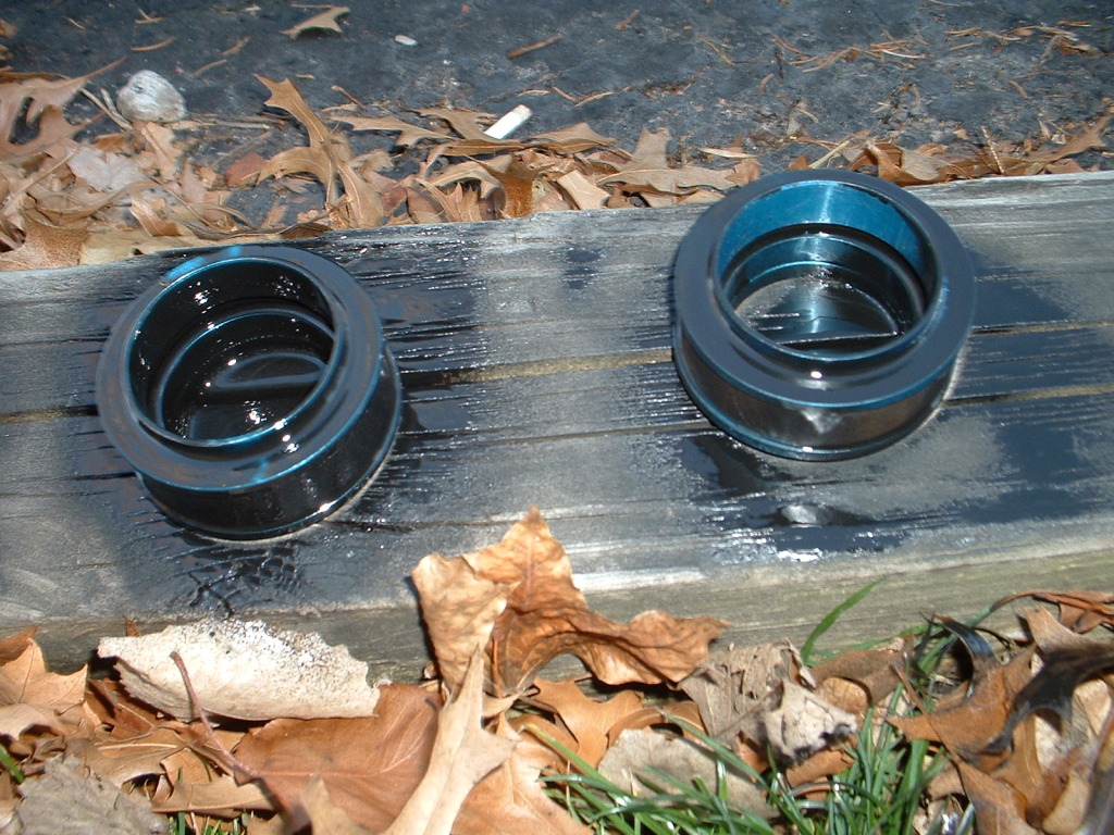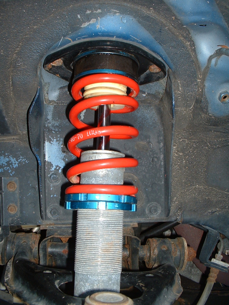 I cannot see from the picture,, do you have the 112# 'lighter springs above the blue locking collar? I used the 'B' conversion parts two rubber bushings and new top hat, etc. over the 112# spring. My setup works as I've described. dave