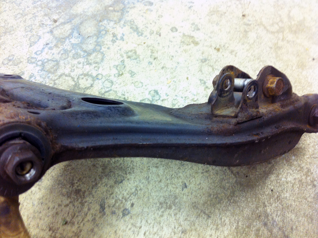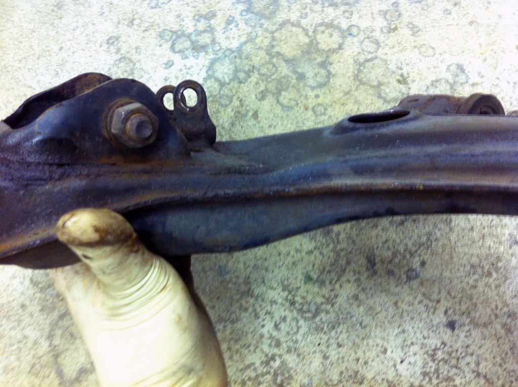 It's tough to photograph, but the area just inboard of the swaybar mount is depressed in quite a bit - like the arm was trying to fold in half.