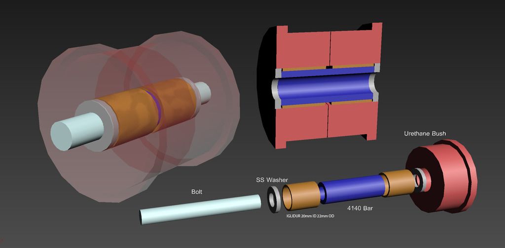 edit: there is a whole range of different composite bearing materials. I think I used G, but you can get ones that might be more suited with a high wear resistance and also strength. They cost more though. Also I'm not sure this setup would be suited to a street car. Life might really take a hit with daily use.