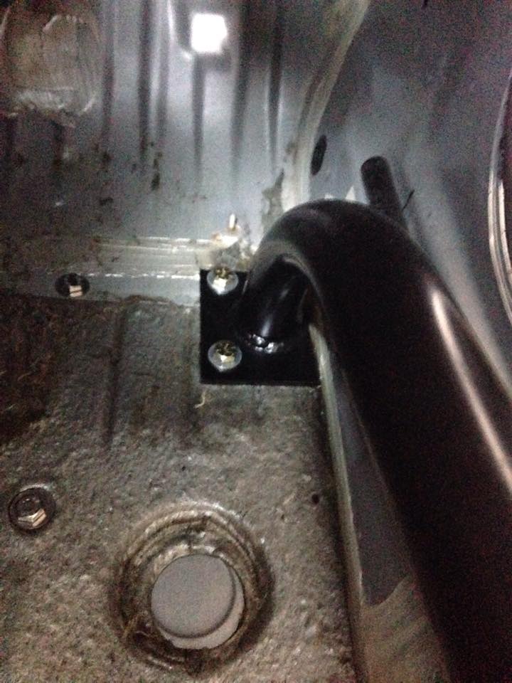Front is butted up against the lower sill, and bolted to floor pan via 3 bolts with backing plates on the bottom underneath the car. No door bar that I am aware of other than Moti's attaches to the side sill.