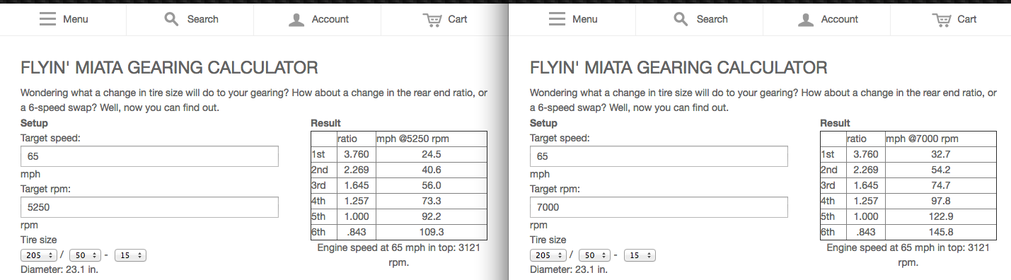 In reality it should probably be around 5250 to take advantage of my 7000 redline and line the mph up perfectly.