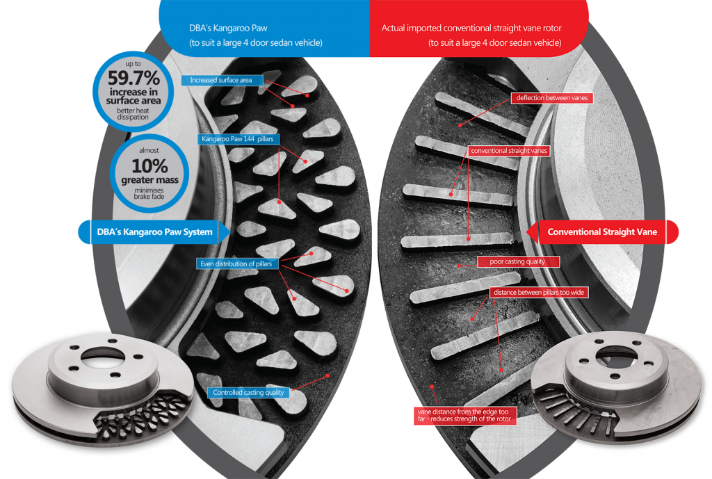 The wilwood standard rotors are straight-vane, made in China, low-cost rotors. Easy to acquire, easy on the wallet. Not comparable to a high-grade motorsports rotor though.