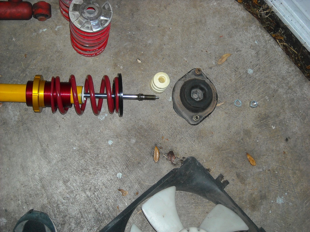 I'll start off by saying that the previous owner made some poor choices and then suspension can't be "put back the way I found it". I'm trying to make sure I'm not missing something on the install of Koni and Ground Controls on a 1990. See the pic below and tell me if it looks like something is missing. Seems like there is a washer or a spacer or something not there, but maybe that's just NBs.