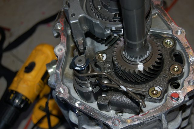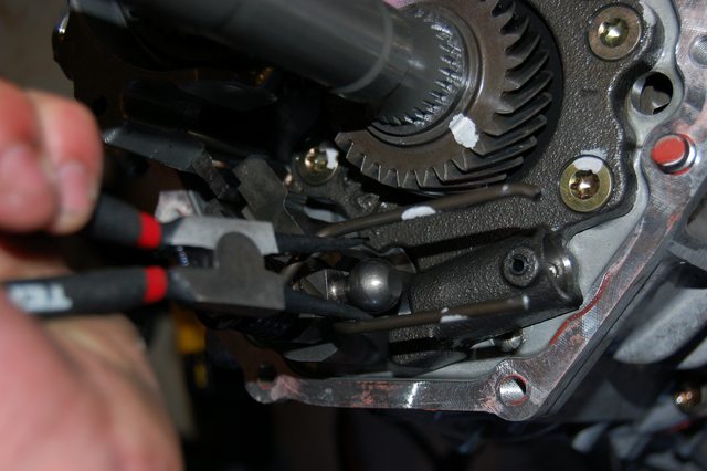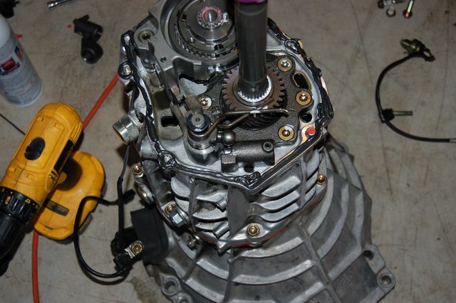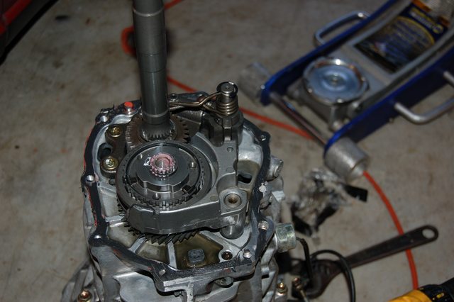 </p><p><a href="http://imgur.com/CC43rgN" target="_blank"><img alt="" src="https://i.imgur.com/CC43rgNl.jpg" /></a></p><p>And its out</p><p><a href="http://imgur.com/qxWpbvK" target="_blank"><img alt="" src="https://i.imgur.com/qxWpbvKl.jpg" /></a></p><p>Here is where mine broke. You can see the "cup" that holds the shifter. This needs to be unbolted before the housing comes off.</p><p><a href="http://imgur.com/XDFf97g" target="_blank"><img alt="" src="https://i.imgur.com/XDFf97gl.jpg" /></a></p><p><a href="http://imgur.com/7ZNRLjF" target="_blank"><img alt="" src="https://i.imgur.com/7ZNRLjFl.jpg" /></a></p><p>Finish taking off the rest of the bolts.</p><p><a href="http://imgur.com/XiQpkKF" target="_blank"><img alt="" src="https://i.imgur.com/XiQpkKFl.jpg" /></a></p><p><a href="http://imgur.com/Mp396Gl" target="_blank"><img alt="" src="https://i.imgur.com/Mp396Gll.jpg" /></a></p><p>Then when you pull of the housing watch the "cup" go boucing off when the housing pops loose.</p><p><a href="http://imgur.com/q4h1BXe" target="_blank"><img alt="" src="https://i.imgur.com/q4h1BXel.jpg" /></a></p><p>Pull the control lever free from the spring clip thingy</p><p><a href="http://imgur.com/nUlqlxH" target="_blank"><img alt="" src="https://i.imgur.com/nUlqlxHl.jpg" /></a></p><p>All shiny and ready to hold allofthe1.6torques</p><p><a href="http://imgur.com/1Bqnn4s" target="_blank"><img alt="" src="https://i.imgur.com/1Bqnn4sl.jpg" /></a></p><p>Oops, whats that</p><p><a href="http://imgur.com/YqLZOeP" target="_blank"><img alt="" src="https://i.imgur.com/YqLZOePl.jpg" /></a></p><p>Yeah make sure to get rid of all the pieces of aluminum in your gearbox</p><p><a href="http://imgur.com/J784R8W" target="_blank"><img alt="" src="https://i.imgur.com/J784R8Wl.jpg" /></a></p><p>More pretty gear pics</p><p><a href="http://imgur.com/28rKzpB" target="_blank"><img alt="" src="https://i.imgur.com/28rKzpBl.jpg" /></a></p><p><a href="http://imgur.com/IWLekfC" target="_blank"><img alt="" src="https://i.imgur.com/IWLekfCl.jpg" /></a></p><p>To reasseble start by opening the spring clip with some snapring pliers, and then slipping in the control lever.</p><p><a href="http://imgur.com/utXf2Qg" target="_blank"><img alt="" src="https://i.imgur.com/utXf2Qgl.jpg" /></a></p><p>Here are the 2 different control levers. The top one is the newer lever and has some extra notches for feeling or something.</p><p><a href="http://imgur.com/UbIeXyY" target="_blank"><img alt="" src="https://i.imgur.com/UbIeXyYl.jpg" /></a></p><p><a href="http://imgur.com/PD6Dngk" target="_blank"><img alt="" src="https://i.imgur.com/PD6Dngkl.jpg" /></a></p><p>Apply some goo. I used the "right stuff" by permatex by recomendation from bbundy.</p><p><a href="http://imgur.com/5VuIfvR" target="_blank"><img alt="" src="https://i.imgur.com/5VuIfvRl.jpg" /></a></p><p>Here's what bit me in the ***. At some point, when the notches were added to the control lever a small spring loaded ball was added. Without pulling this ball out it was impossible for me to get the control lever in. So, while balancing the housing over the goo I grabbed my allen wrench and pulled it out. Save the spring and then push the ball out of the way.</p><p><a href="http://imgur.com/mzBMEnR" target="_blank"><img alt="" src="https://i.imgur.com/mzBMEnRl.jpg" /></a></p><p>Then as the housing slides on, forget to put the "cup" for the shifter and have to redo all of the goo....just kidding don't do that. Before the housing slips all the way on, get the shifter end over the control lever and slide the housing on the rest of the way.</p><p><a href="http://imgur.com/1WYud7r" target="_blank"><img alt="" src="https://i.imgur.com/1WYud7rl.jpg" /></a></p><p>(redoing the goo)</p><p><a href="http://imgur.com/gCZJfgg" target="_blank"><img alt="" src="https://i.imgur.com/gCZJfggl.jpg" /></a></p><p><a href="http://imgur.com/8pACEae" target="_blank"><img alt="" src="https://i.imgur.com/8pACEael.jpg" /></a></p><p><a href="http://imgur.com/XaGNgoR" target="_blank"><img alt="" src="https://i.imgur.com/XaGNgoRl.jpg" /></a></p><p>Slide the shifter end on and apply loctite and torque down to FSM specs.</p><p><a href="http://imgur.com/JXx1Jw7" target="_blank"><img alt="" src="https://i.imgur.com/JXx1Jw7l.jpg" /></a></p><p><a href="http://imgur.com/xRiO26E" target="_blank"><img alt="" src="https://i.imgur.com/xRiO26El.jpg" /></a></p><p><a href="http://imgur.com/1TA1Qon" target="_blank"><img alt="" src="https://i.imgur.com/1TA1Qonl.jpg" /></a></p><p>Put the bolts back on.</p><p><a href="http://imgur.com/BFmRWIq" target="_blank"><img alt="" src="https://i.imgur.com/BFmRWIql.jpg" /></a></p><p> </p><p><a href="http://imgur.com/T40f3k1" target="_blank"><img alt="" src="https://i.imgur.com/T40f3k1l.jpg" /></a></p><p>Torque to spec</p><p><a href="http://imgur.com/jW7NPrA" target="_blank"><img alt="" src="https://i.imgur.com/jW7NPrAl.jpg" /></a></p><p>Put the switches back in.</p><p><a href="http://imgur.com/xF7LlEa" target="_blank"><img alt="" src="https://i.imgur.com/xF7LlEal.jpg" /></a></p><p>In the above picture you can see a hole that I didn't realize was empty until everything was assembled. This is the breather hole. If your new extension housing doesn't come with a breather, do this before you put it all together. I had a mini heart attack until I realized that I could take the old one out and install it from the outside.</p><p>Apparently you can get the baffle in there out, without destroying it. But I couldn't. So I destroyed the baffle and tapped out the breather with a small extension.</p><p><a href="http://imgur.com/22Lhg6t" target="_blank"><img alt="" src="https://i.imgur.com/22Lhg6tl.jpg" /></a></p><p><a href="http://imgur.com/sFxAdpx" target="_blank"><img alt="" src="https://i.imgur.com/sFxAdpxl.jpg" /></a></p><p><a href="http://imgur.com/DZOiJJv" target="_blank"><img alt="" src="https://i.imgur.com/DZOiJJvl.jpg" /></a></p><p><a href="http://imgur.com/f9XiNE5" target="_blank"><img alt="" src="https://i.imgu