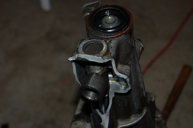 New tailshaft housing from Bob. This is from a later trans, mid-01 to 05. This fact will come back to bite me in the *** just wait. The main difference is the shifter though. Here is a quote from Bill at MiataRoadster.