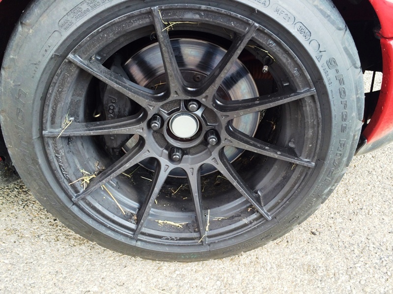 Yeah, I bedded these per the Carbotech instructions the morning of the track day. But I had been street-driving them for a few days before that while I broke in the engine. I wonder if I f***ed up the pads? I hope not. At least the feel from the front is good.