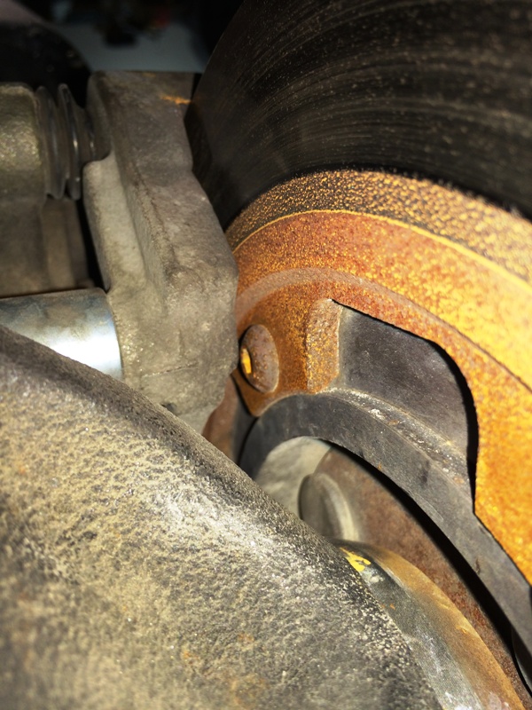 I'm going to do some more teardown tonight to inspect the brackets for matching interference marks. Theory could be that when sufficient brake torque is applied, the brackets might bend sufficiently to contact those bolt heads?
