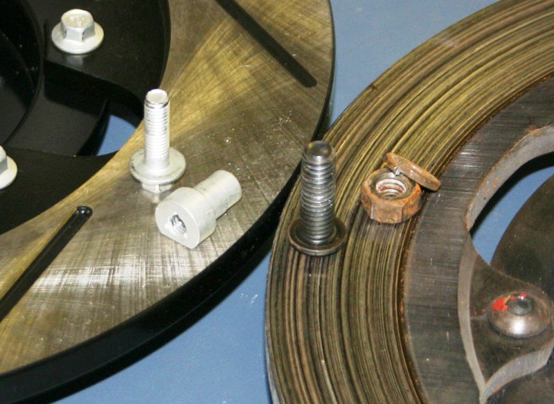 Looking closely at the allen-head pan bolts that secure the friction ring, they have almost no clearance to the caliper bracket. A close up of the bolt head shows that it looks like it's been hit with a file. Pics: