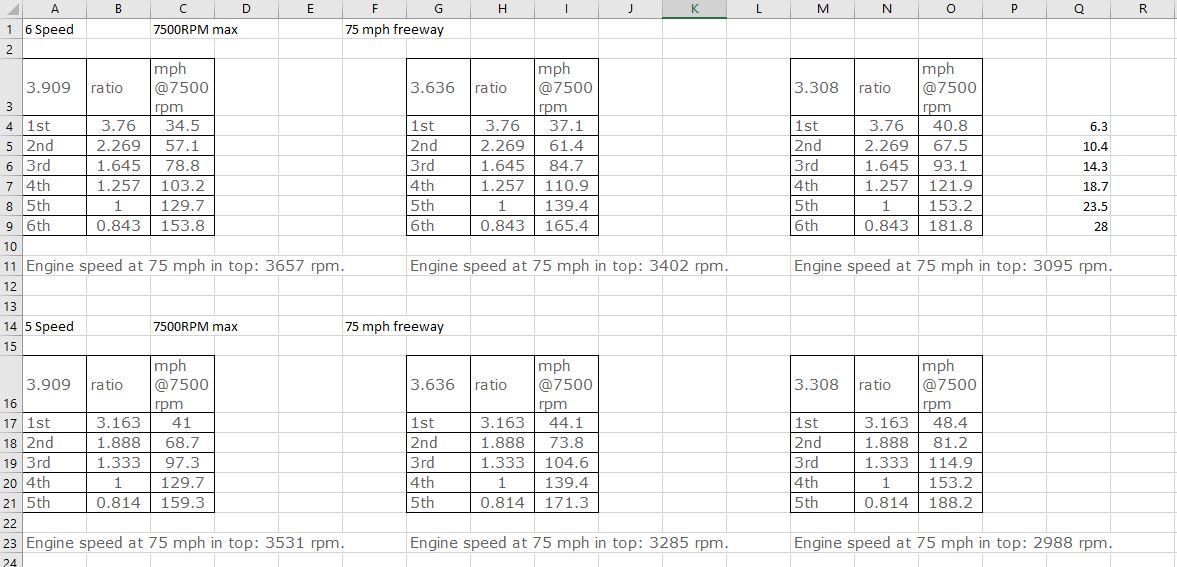 Wow! I'm glad I looked here when I did. These do exactly what I have been wanting: 5spd shift speeds from my 6spd with an extra gear up top for cruising. I mean, just look at the spreadsheet