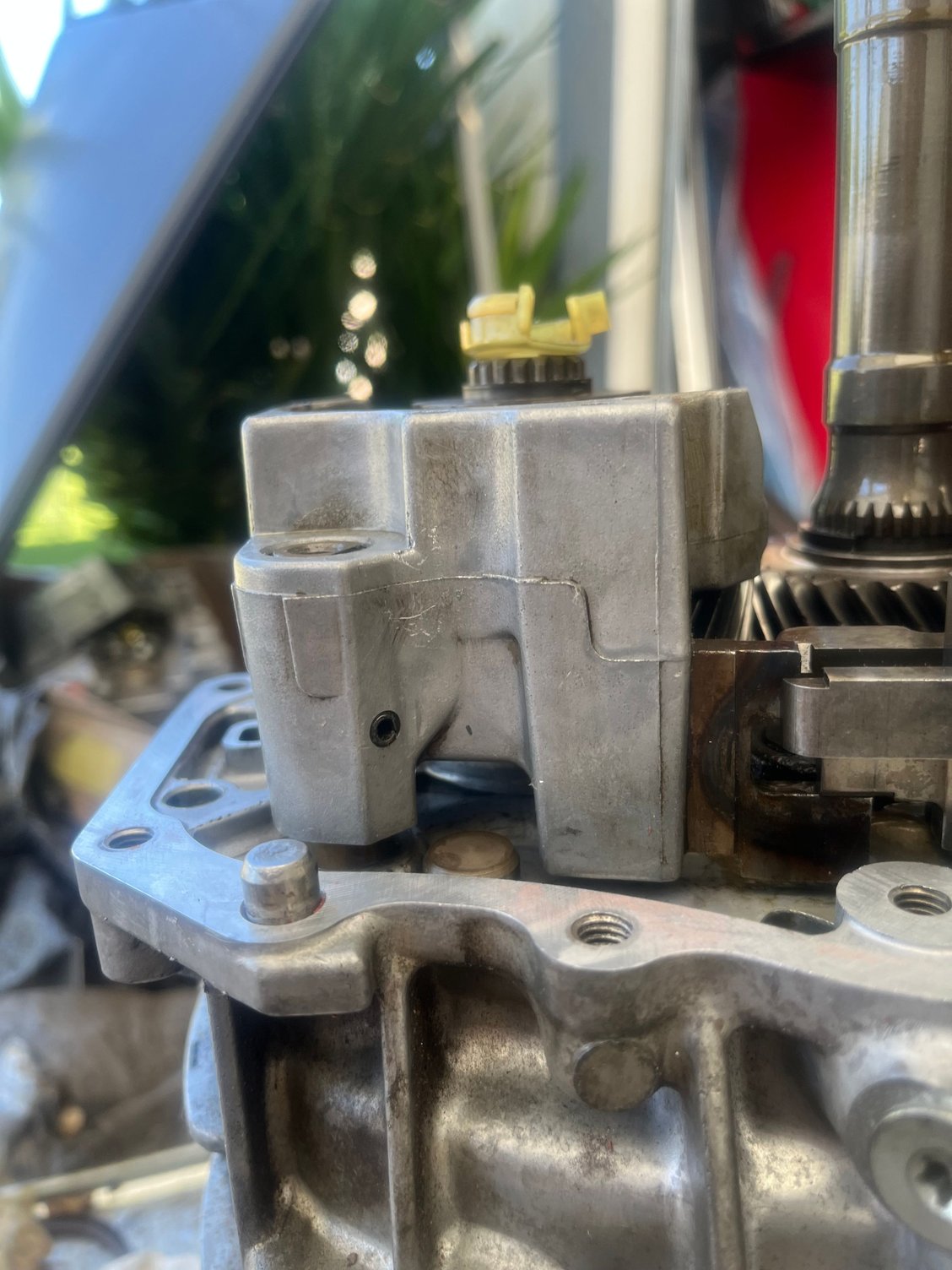 One oversight I made last night is that the 6th gear fork actually moves towards the front of the transmission (in hindsight, duh). If I had placed the hole further forward into the gap I identified above, this might have worked. I don’t know that there’s enough room to clear the flange casting though.