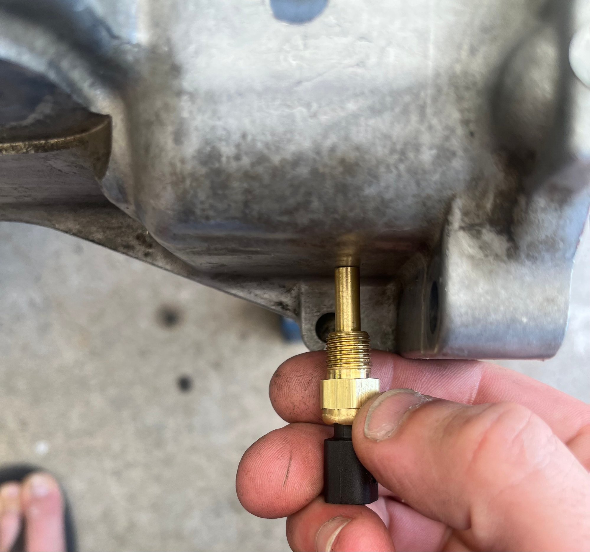 icedawg saved the day. I cut down the 1/4 NPT bushing a bit and threaded it in with some green Loctite. It should stay put and sealed. As you can see, the tip of the Ballenger sensor sticks out just a bit - it could probably go further, but I didn’t feel like screwing with it.