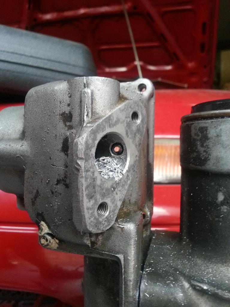 heres a pic of the hole drilled to show how far off the split pin was from coming out the normal way