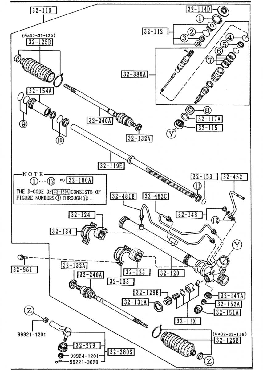 Curious to see if I was doing it wrong, I checked out the Mazda Motorsports site. Check out the attached GIFs. 32-133 is the clamp in question on the manual rack - it seems that the PS and manual rack clamps simply swap sides (32-133 & 32-134).