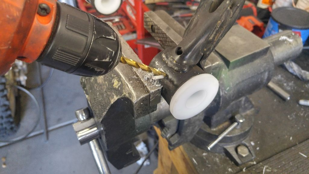 After that, it's lots of cleaning, new grease, press bushings in, drill holes for grease zerks and for the offset set screws, etc etc. It's your typical bushing install aside from having to ream out the delrin bushings before putting in the sleeves. Everything was pretty straight forward.