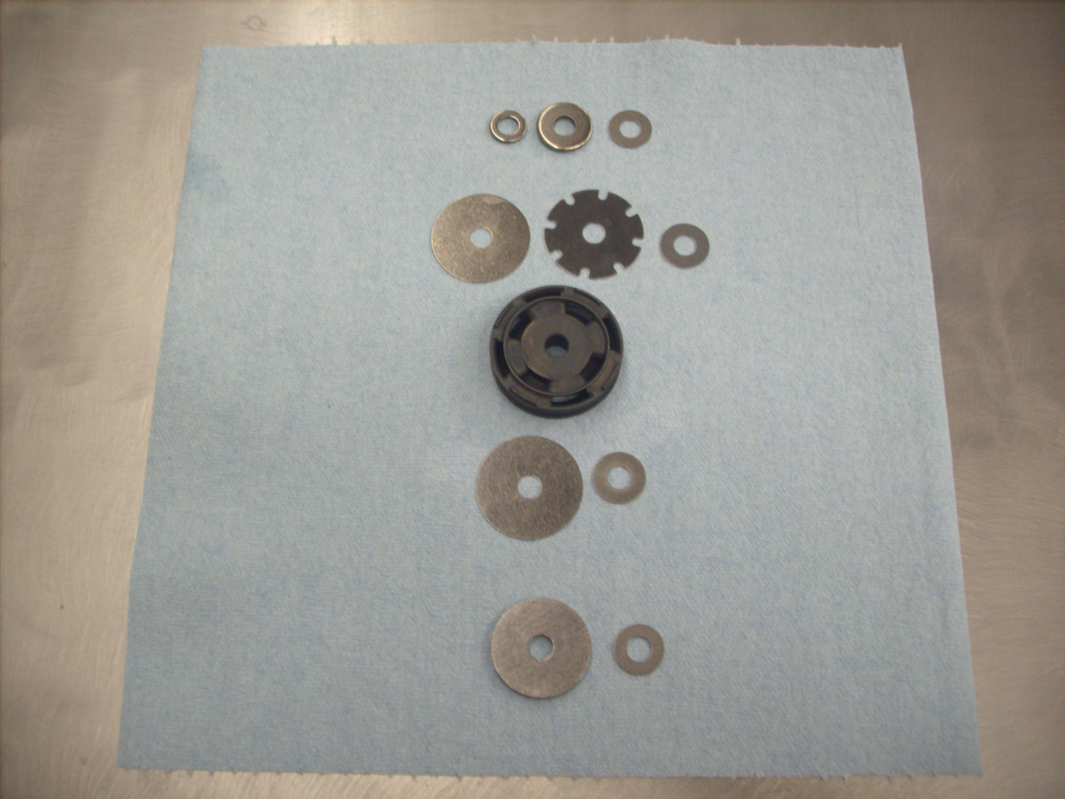 The picture below shows how the notched shim sits on the piston. By changing the thickness of this shim you are able to change the amount of bleed.