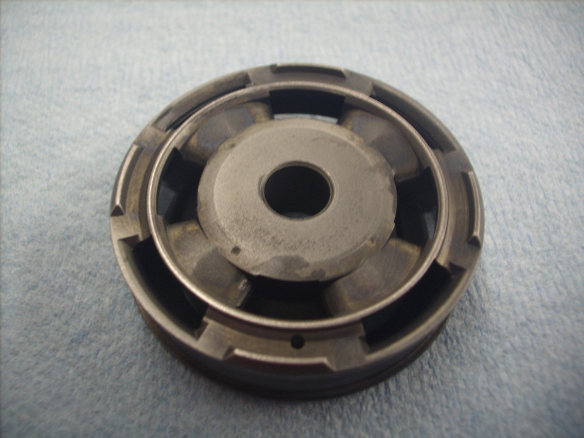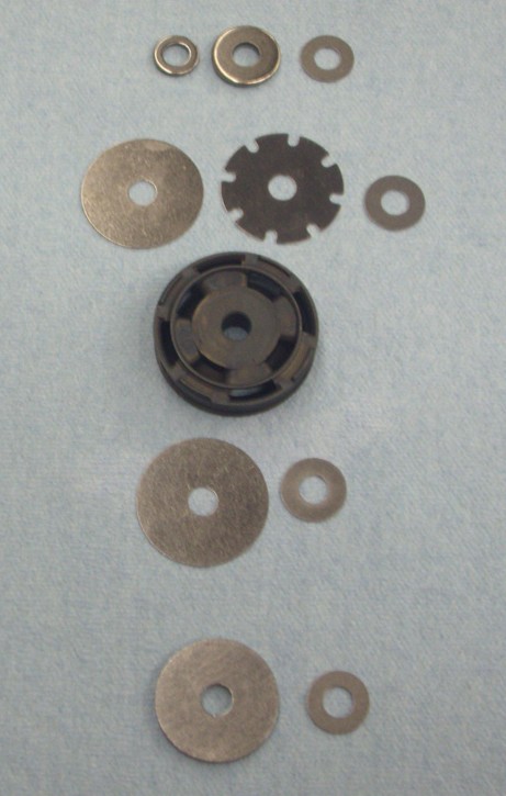 The slotted shim, which we've already introduced as the "bleed shim" is next. As Bernie mentioned this comes with different size and different numbers of slots. Interestingly, it's designed so that no matter how it's clocked on the shaft the same amount of bleed opening is exposed.
