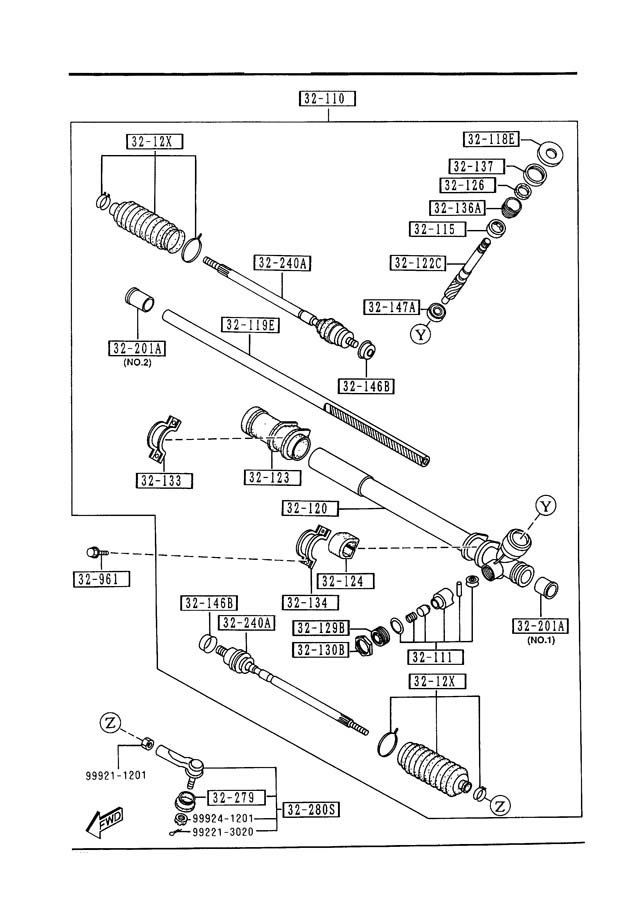 The particular part I needed was 32-201A (No.2). I did a google search for it and found that the Mazda part number for that exact part was HE0932201. I went to my local Mazda dealer and they had it to me the next day for a whopping total of $11.