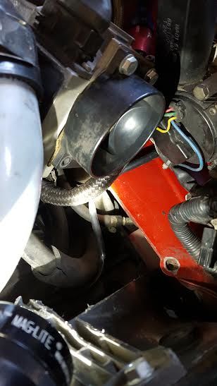 The second port leads to some aluminum lines that pass in front of the radiator then return back. (In the picture you can just barely see the line transition to the aluminum line as it sneaks under the sidewall)