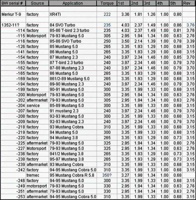 The V6 T5s are not as strong; even the later ones. According to this, I was a few years off on the strongest options.