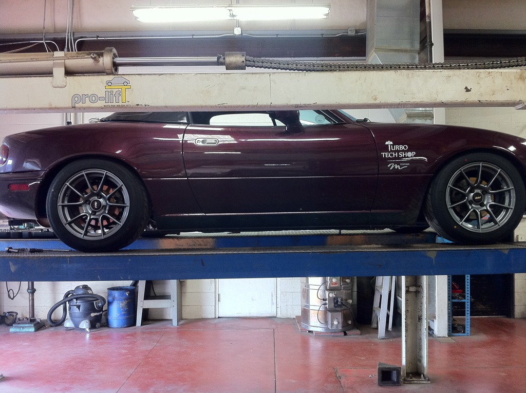 Noticed she is leaning front and rear heavily to the passenger side. This morning I had it up on the lift, loosened every moving bolt on the suspension. Drove it around and put around 4 miles on it. Brought it back, tightened everything and went and had an alignment. I have 2 more weeks to get a free alignment and after the body work I had done, the repair shop had the passenger rear out of whack.