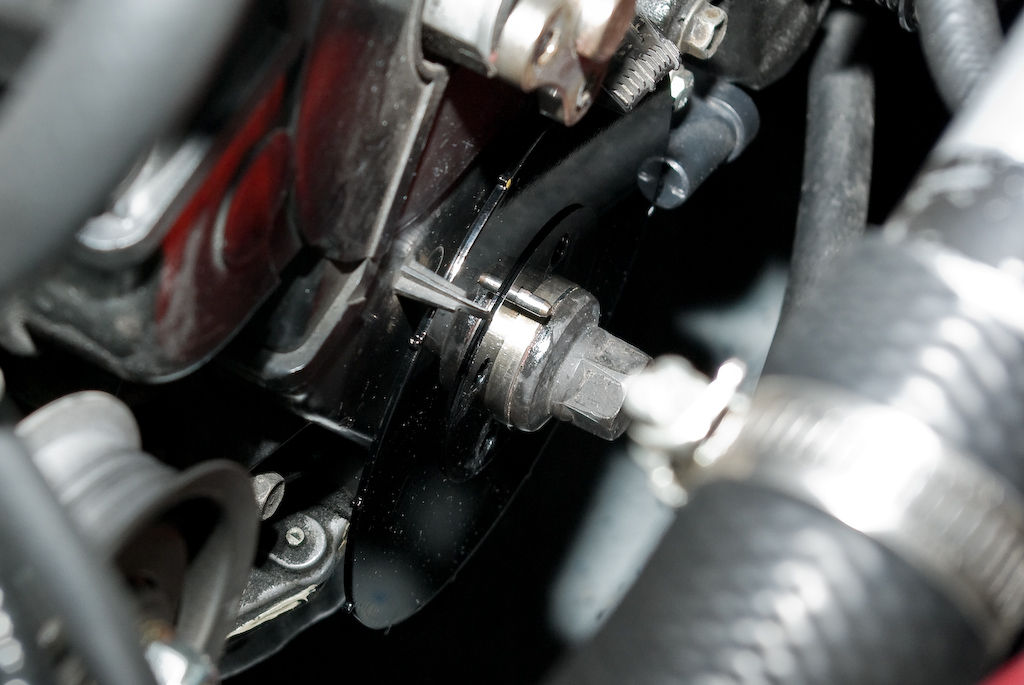 To mount the trigger wheel you need the shorter pulley boss from a '96-'05 Miata. Do not use the longer '94-'95 pulley boss.