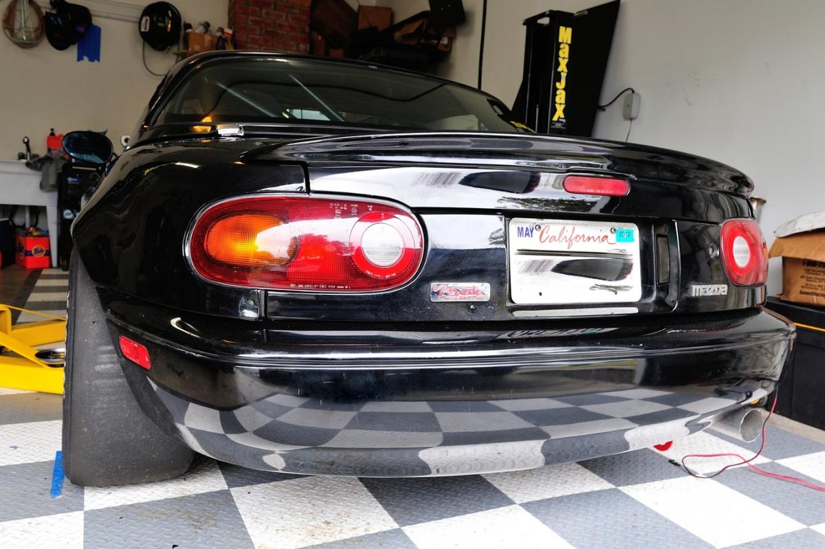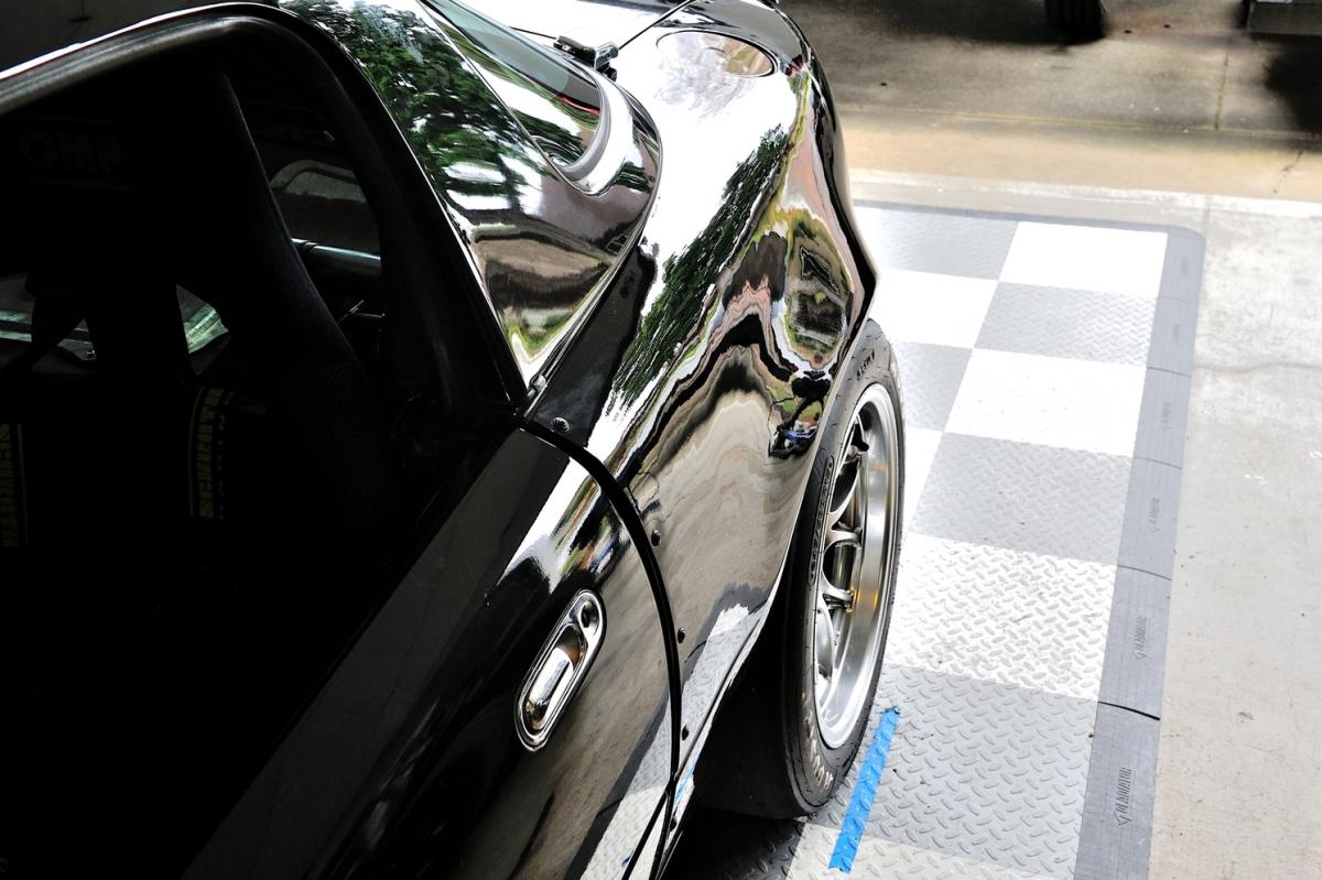 FYI, Mike's fenders are Autokonexion GT-Widebody 40mm fronts and full-replacement 30mm rears. If you want to keep a factory-style nose, the 30mm "Blister" front fenders look like factory fenders, but provide enough clearance to run 15x10s. TSE is an Autokonexion dealer, so if you're interested in fenders to clear man-sized wheels, give us a call.