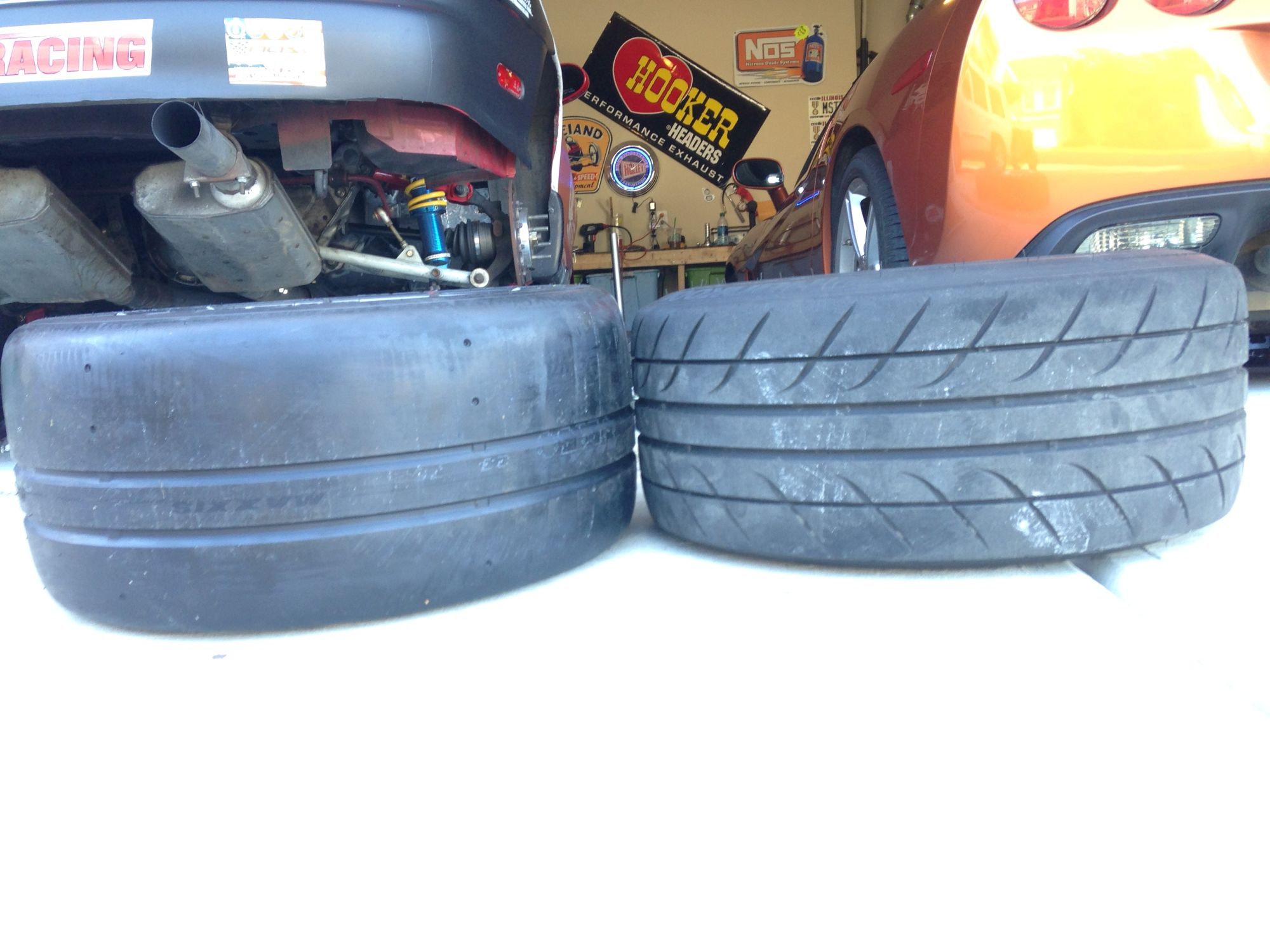 We're finding the same thing in SuperMiata. Needs a bit less camber, most of cord the inside shoulder first. They seem to be fastest when run at the lowest pressure that lest them steer nice, dictated by pyro readings in morning practice. Usually a 2-3psi window. Run at the top end of that window they feel great but fall off earlier in the race. Run at the bottom of the window, they come up on the formation lap with some working and stay pretty good for the 25-30 minute back to back sprint race.