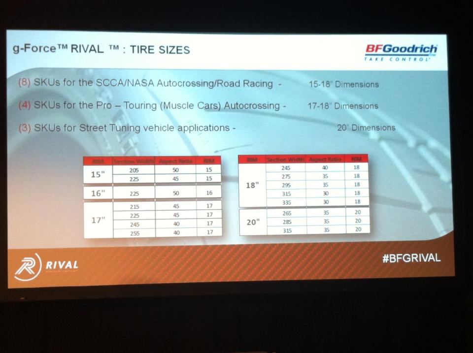 This was a launch event- no longer a secret . Tomorrow Tire Rack will have a product page including sizes with ETA's up tomorrow for ore- order. Some sizes due first week of February, one of which is the 225/45/15.
