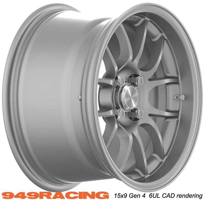 A few design notes. We have incorporated TPMS compatibility in all Gen 4 6UL's. Some manufacturers are upping max load to 550kg for some widths in 4x100 but not others. We are adding 10% to the industry standard VIA max load rating for every new 949 Racing wheel. We call this Spec949. For reference, VIA standard for 4x100 is 500kg. I personally liked the slightly sharper spoke edge on the Gen 1's over the Gen 2 and Gen 3 wheels so we brought that back for the Gen 4. Tiny difference but I think it defines the wheel a bit. We have retained 11" Dynalite BBK clearance. We will publish brake templates when we open the site for pre-ordering for each size. It is unknown how they will clear 11.75 Powerlite and DP4 kits until we can get templates for them (Keith, Andrew?).