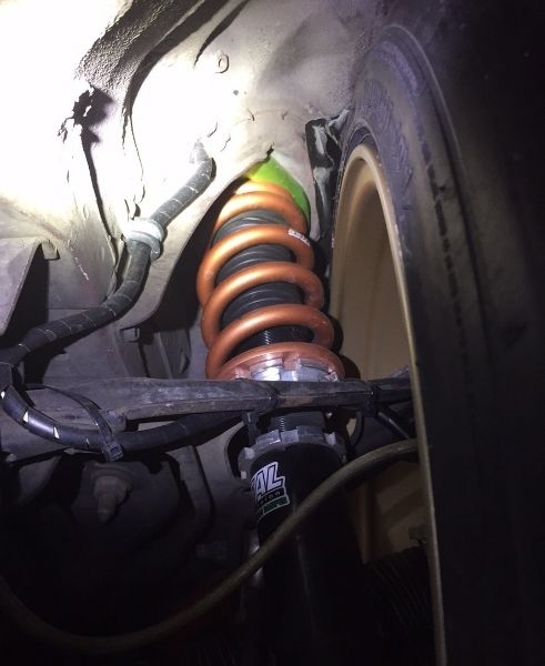 Forgot to snap a picture of the rear, but the wheel/tire clears everything on the inside juuuuust barely. Bump travel looks OK in the rear, but if you only limited shock travel in the front, you'd be in for some funky handling characteristics.