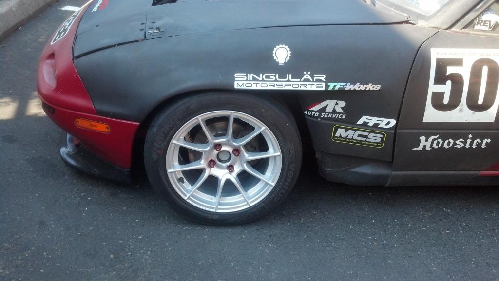 I just want to come in here and share my experience with the FFDs. Austin and Kalson have gone above and beyond in customer service. As you might know, I have 2 sets of the wheels for Lazarus, one for track use with hoosiers and one with RS3s for street/occasional track. The wheels are lightweight, inexpensive, look good, and thus far have taken a beating as laz rockets around the racetrack bouncing off curbs.