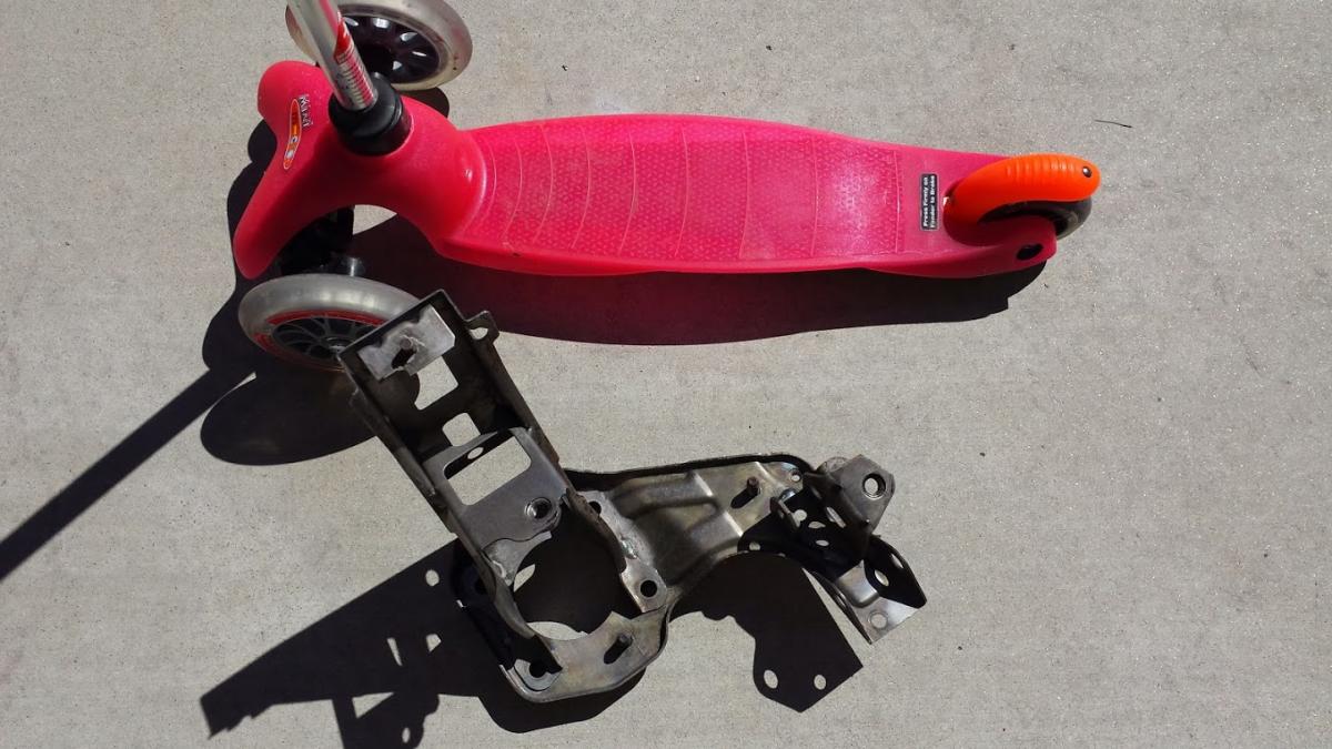 I should have made a "before and after" sequence, but here is my pedal assembly bracket after I left it overnight in Evaporust. The stuff is only good for about a year and my bottle is older than that, so I had to use a little steel wool.