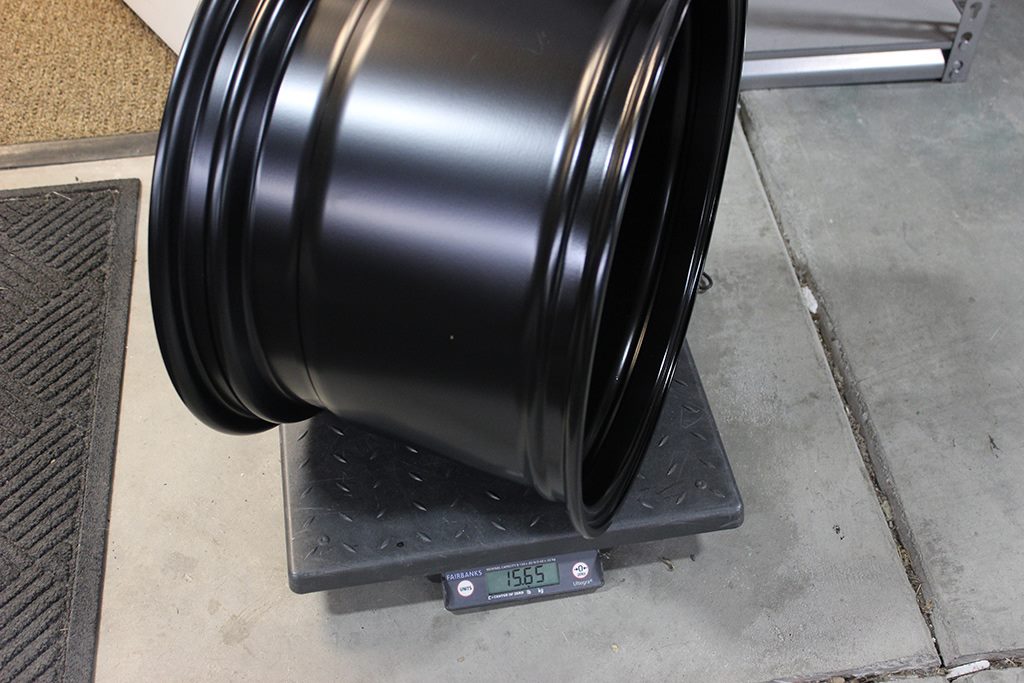 Official weight of the 15x10: 15.65 lbs. The production 15x8 is 14.25 lbs.