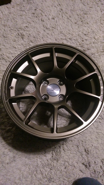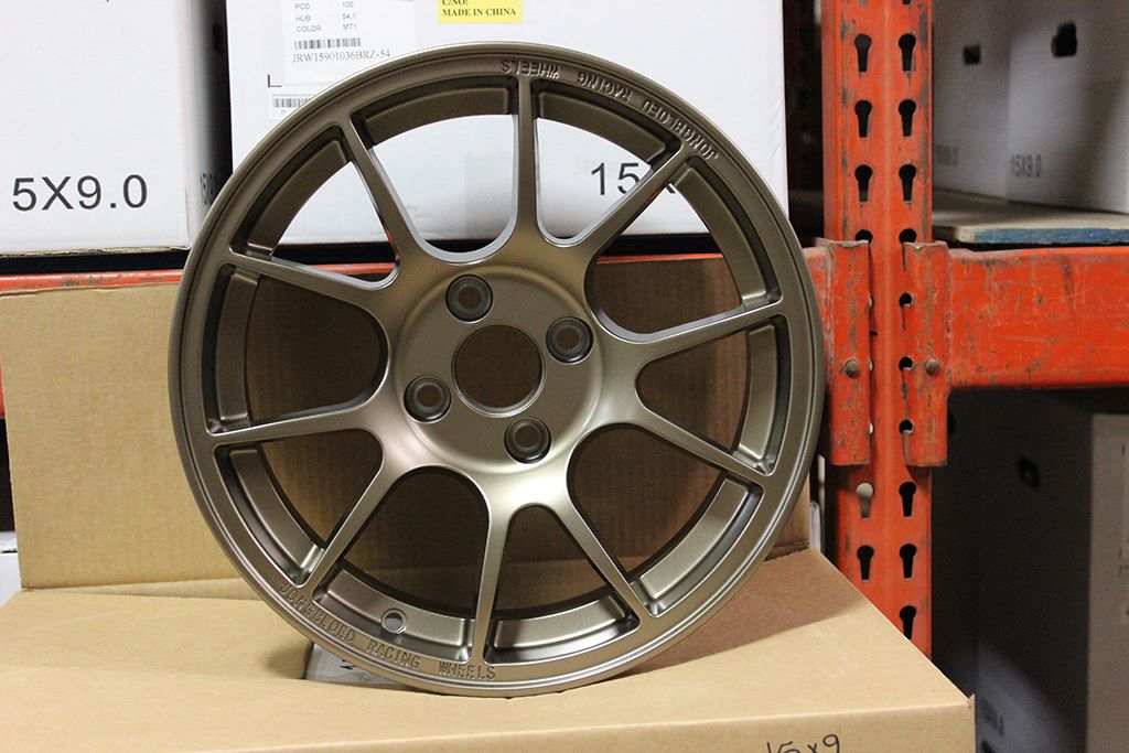 We had a bit of a surprise when the shipment showed up: we're short a bunch of wheels. Until we hear about another shipment, we're assuming this is all there is. So supplies are a bit limited, and the silver 15x8 is currently sold out. Also, we discovered that a number of the wheels have a 67mm hub bore instead of 54.1. These wheels will fit a wider variety of cars, but won't be hubcentric on the Miata. That's the same bore used on the 949 wheels, for example.