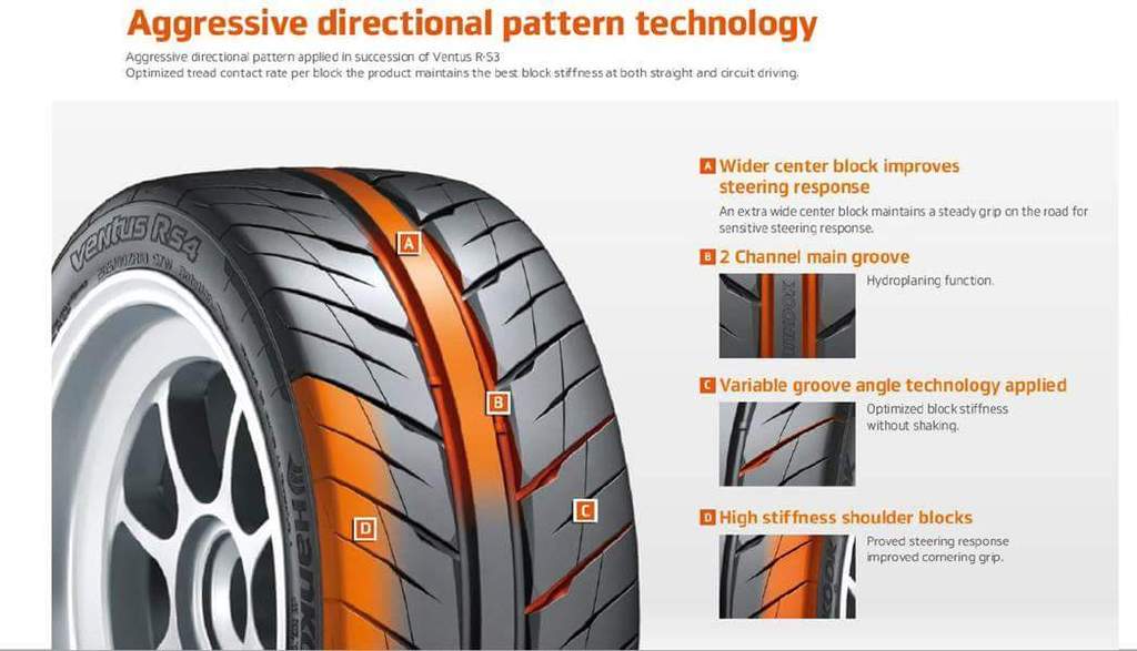 The new updated Racing Carbonblack Silica Compound (RCSC) technology allows the Ventus R-S3 (Version 2) to retain its 200 Treadwear UTQG rating, as well as reach favorable operating temperatures quicker produce more grip in damp/wet conditions.