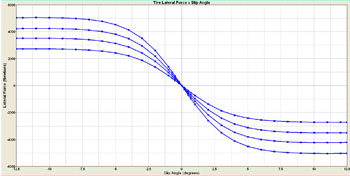 All I've heard so far is, wider wheels are faster! Well, they are. The slight stretch increases cornering stiffness of the tire. If you look at the tire slip angle curve below (slip angle on x-axis, lateral force on y-axis), there is the region that is linear (from 0 to a some small slip angle). Being able to see the values on the graph doesn't matter, because depending on the tire size/compound/etc could range from 2 degrees to 13. Cornering stiffness measures the slope of that linear portion as it crosses the graphs origin. Increasing cornering stiffness may not increase peak force (though sometimes it does!), but more importantly it makes the tire build force faster (increasing response), and overall nets a greater area under the curve.