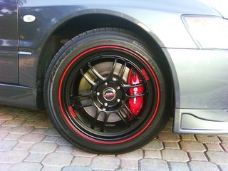 I just love that!!! I've always had a thing for black wheels on a red car, and the red lip makes it better still. Anybody else running these cheapies?