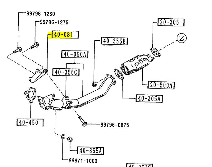 Dammit, maybe it doesn't exist then. It was a hanger there for my FM duals, but it snapped when I removed my old exhaust, and there is the same hanger on my Enthuza duals so I assumed it was a stock part, but I guess not. Weird.