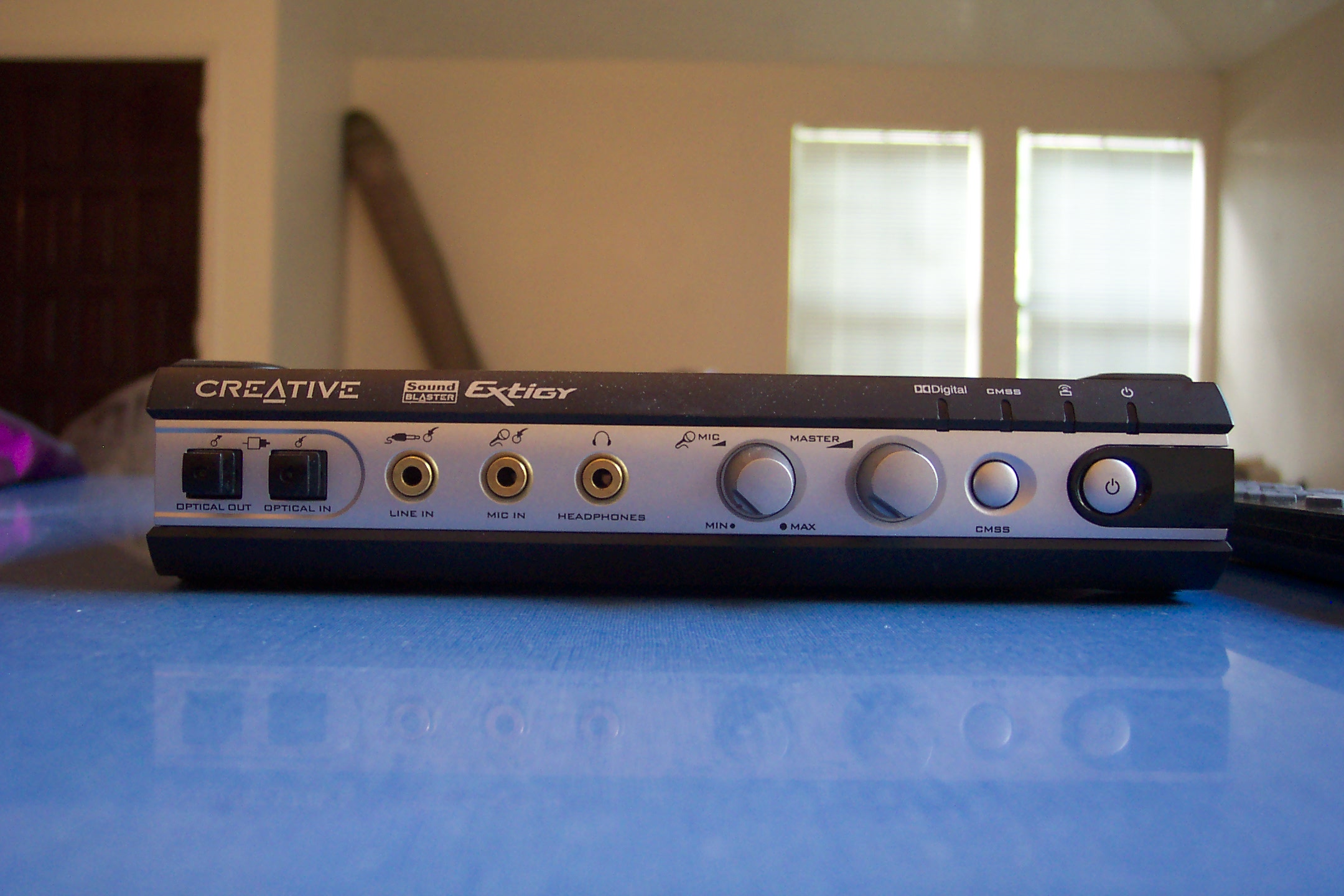 I've got a sound blaster extigy I haven't used in ages that I might be willing to part with. Not sure what it's worth but I'll post pictures in the morning and look into value and let you know what I'll sell it for.