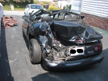 After my wreck, I find that I have a black interior, a motor and transmission, and not much else. (both sides have plenty of damage too, the pic just shows the impact from the semi